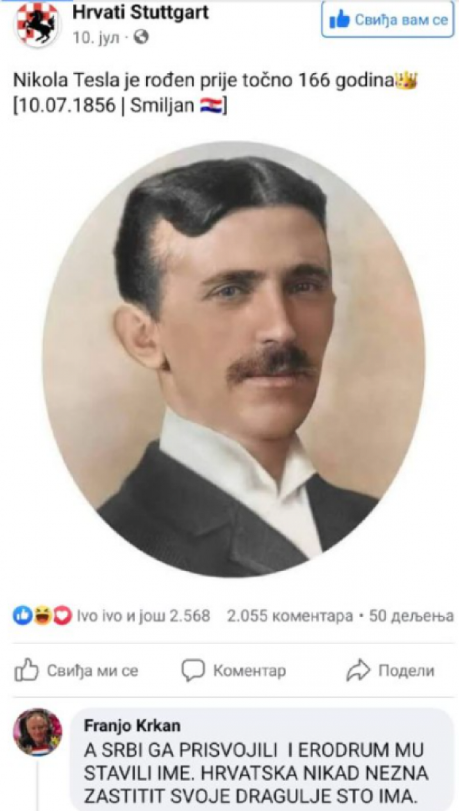 "Dok mi razmišljamo da li je Tesla naš, prisvojili ga Srbi": Franjo ostavio komentar, dobio 500 brutalnih odgovora