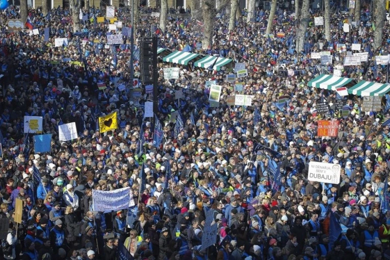 Foto: Tanjug/APPolovina njih, oko 20.000, štrajkuje u Ljubljani na Kongresnom trgu, gde je održan veliki protest, preneo je STA.