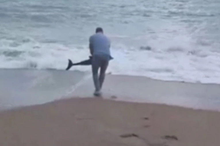 "VEROVATNO SE ODVOJIO OD MAJKE" More izbacilo mladunče delfina na plažu u Budvi - herojski čin ovog čoveka mu je spasio život! (VIDEO)
