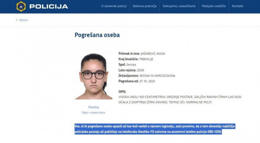 Od Anise Jašarević (14) već tri dana nema ni traga ni glasa.