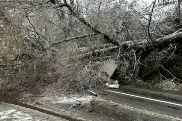 PRVI SNEG NAPRAVIO HAOS U CRNOJ GORI! Stablo se obrušilo na automobil, dve osobe POVREĐENE! (FOTO,VIDEO)