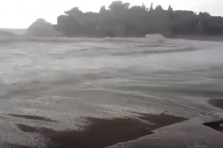 Veliki talasi, koji su juče besnili u Budvi, uništili su plažni bar i stazu na plaži Mogren.