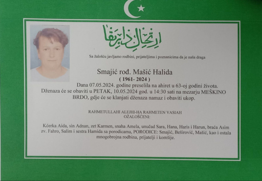 POZNATI DATUM I VREME DŽENAZE HALIDI MUJEDINOVIĆ: Jedan detalj sa umrlice skrenuo pažnju javnosti