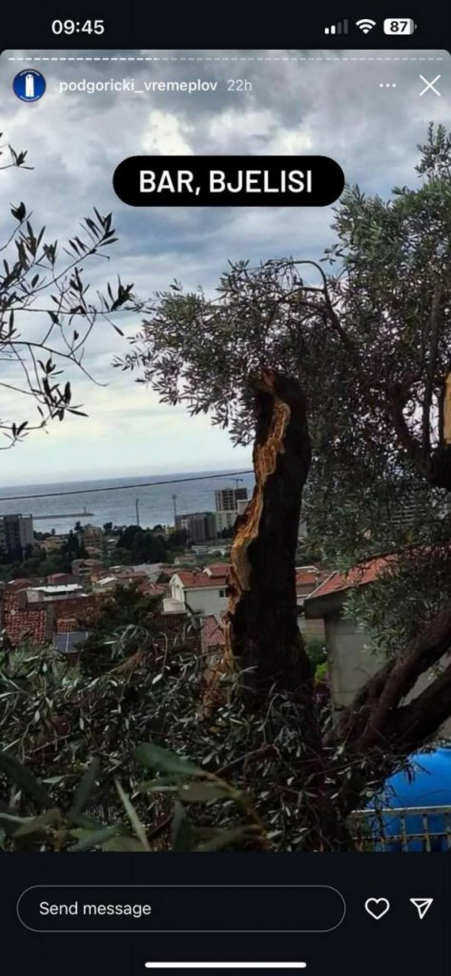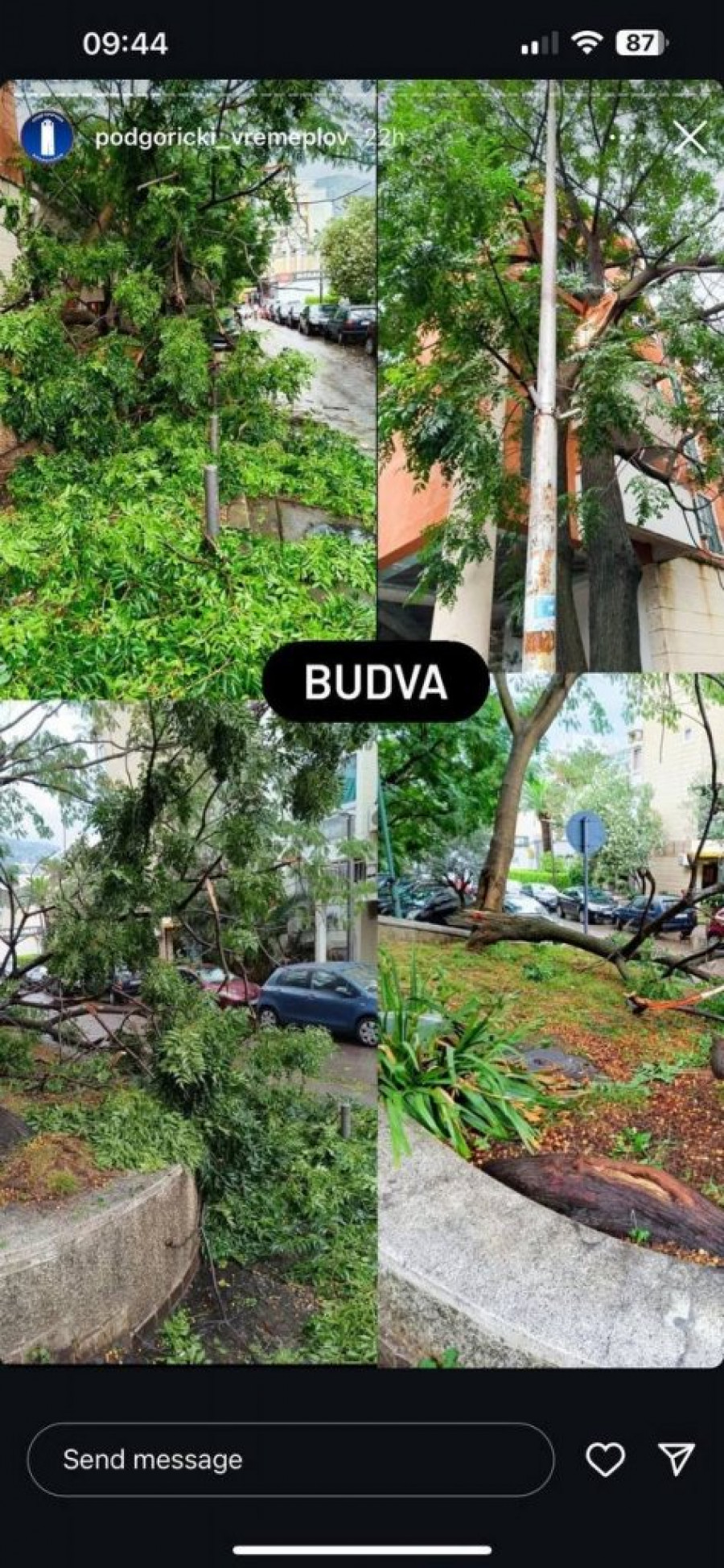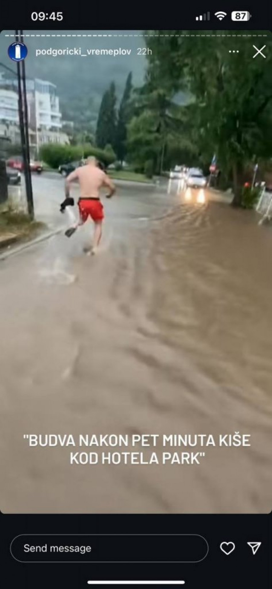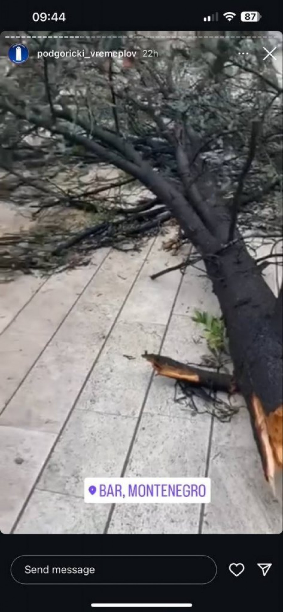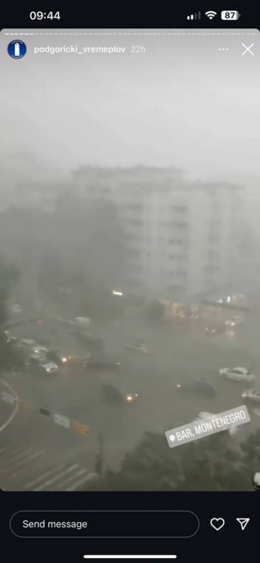 U prepodnevnim časovima juče, Crnu Goru je zahvatilo olujno nevreme praćeno jakim vetrom, pljuskovima i grmljavinom. Oštećeno je više vozila i plovila, a ulice na primorju su bile pod vodom, pri čemu je najkritičnija situacija bila zabeležena u Budvi.