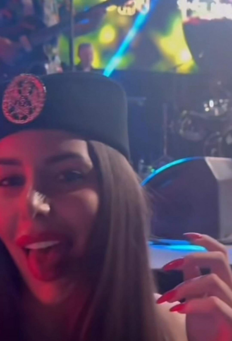 Naime, na snimku koji se pojavio na mrežama ova prelepa Srpkinja nalazi se verovatno u klubu ili na koncertu, te nasmejano pozira sa šajkačom koja na sebi ima kokardu.