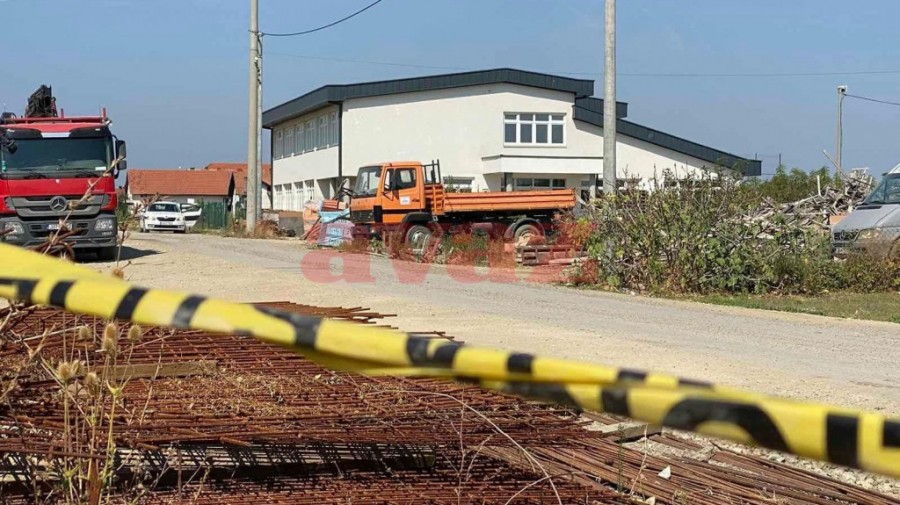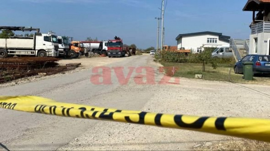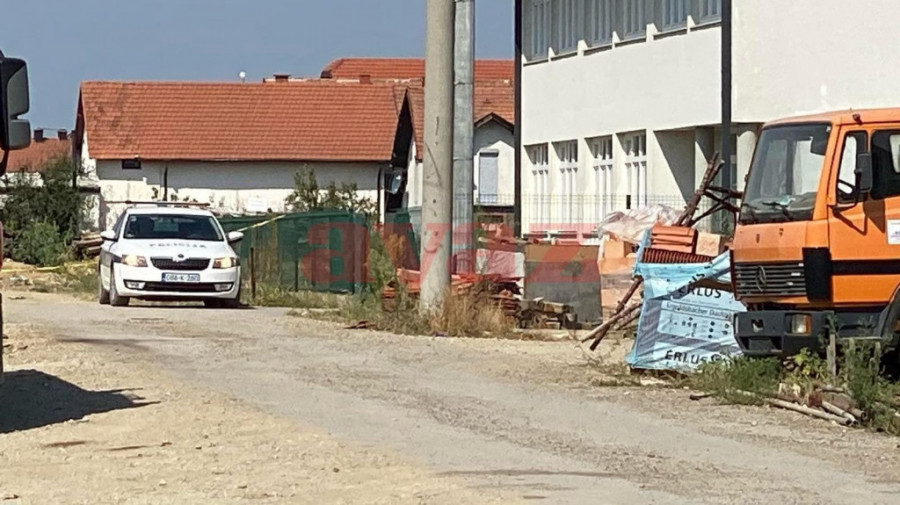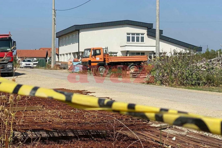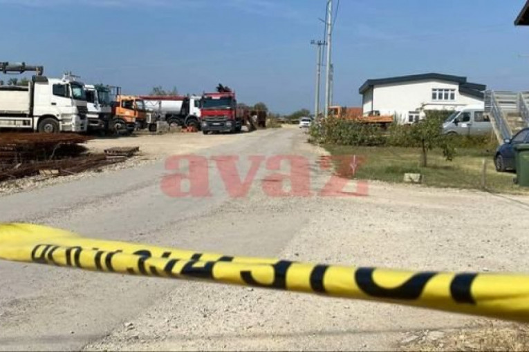 Ubistvo se desilo u krugu jedne fabrike, a oko mesta događaja se nalazi građevinski materijal i brojni kamioni.