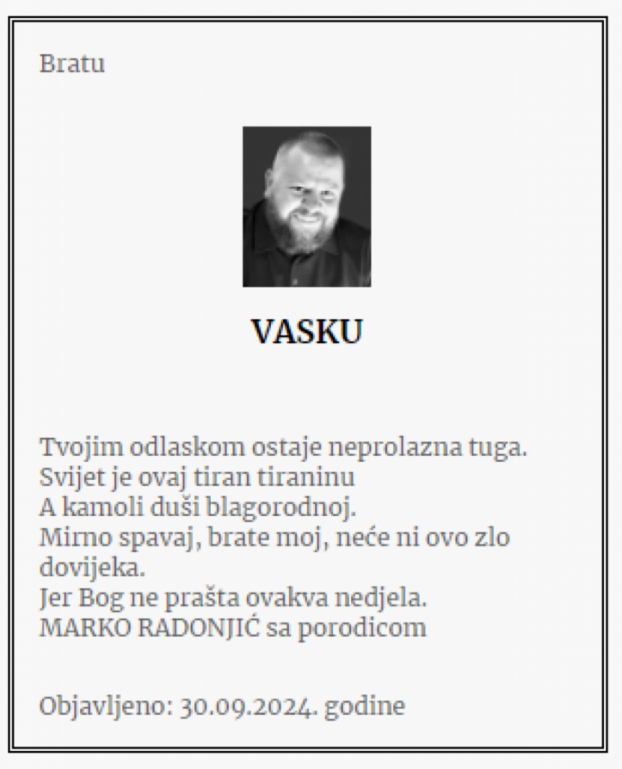 Brat Gorana Radomana posvetio je čitulju ubijenom "škaljarcu".