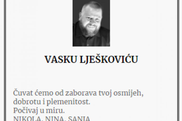 ČAK 118 ČITULJA ZA UBIJENOG ŠKALJARCA VASKA LJEŠKOVIĆA! Roditelji neutešni, a žena poručuje: "UBILI SU TE KUKAVIČKI, U KUĆI, NJIMA KAKO JEDINO I DOLIKUJE..."!
