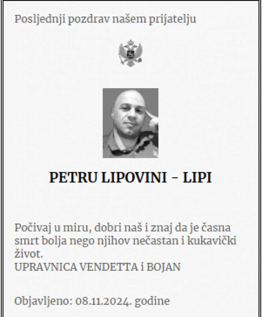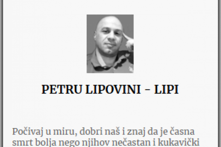 - Počivaj u miru, dobri naš i znaj da je časna smrt bolja nego njihov nečastan i kukavički život - piše u jednoj od objavljenih oproštaja za Petra Lipovinu, dok dugu potpisuje misteriozna Tamara Jankova i Žecijeva.