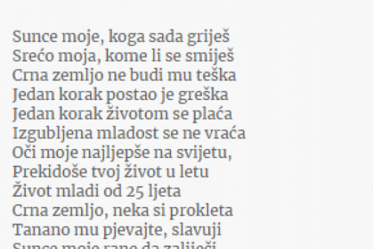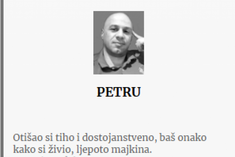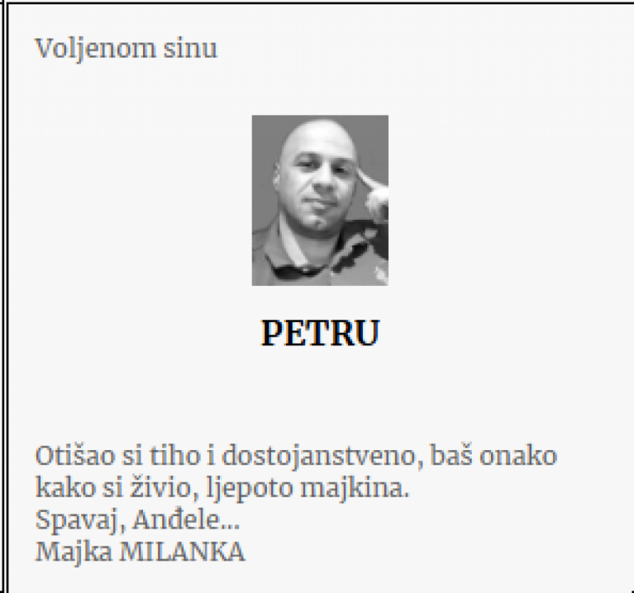 S druge strane, čitulju je pored sestara i braće objavila i majka Petra Lipovine gde je navela: