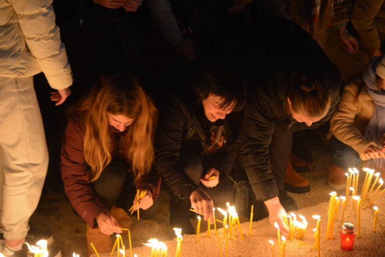 U Centru cetinja pale se sveće, a trenutno je prisutno oko 1.000 ljudi koji se opraštaju. Mnogo je mladih došlo, a svuda vlada potpuni muk i tišina.