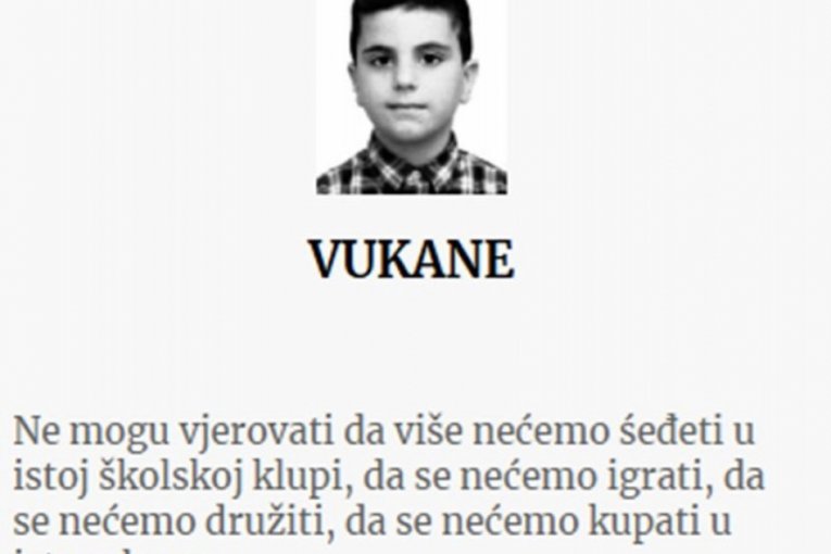 - Ne mogu verovati da više nećemo sedeti u istoj školskoj klupi, da se nećemo igrati, da se nećemo družiti, da se nećemo kupati u istom bazenu. Želim ti da budeš srećan u društvu anđela na nekom mnogo pravednijem i lepšem mestu, voli te tvoj drug.