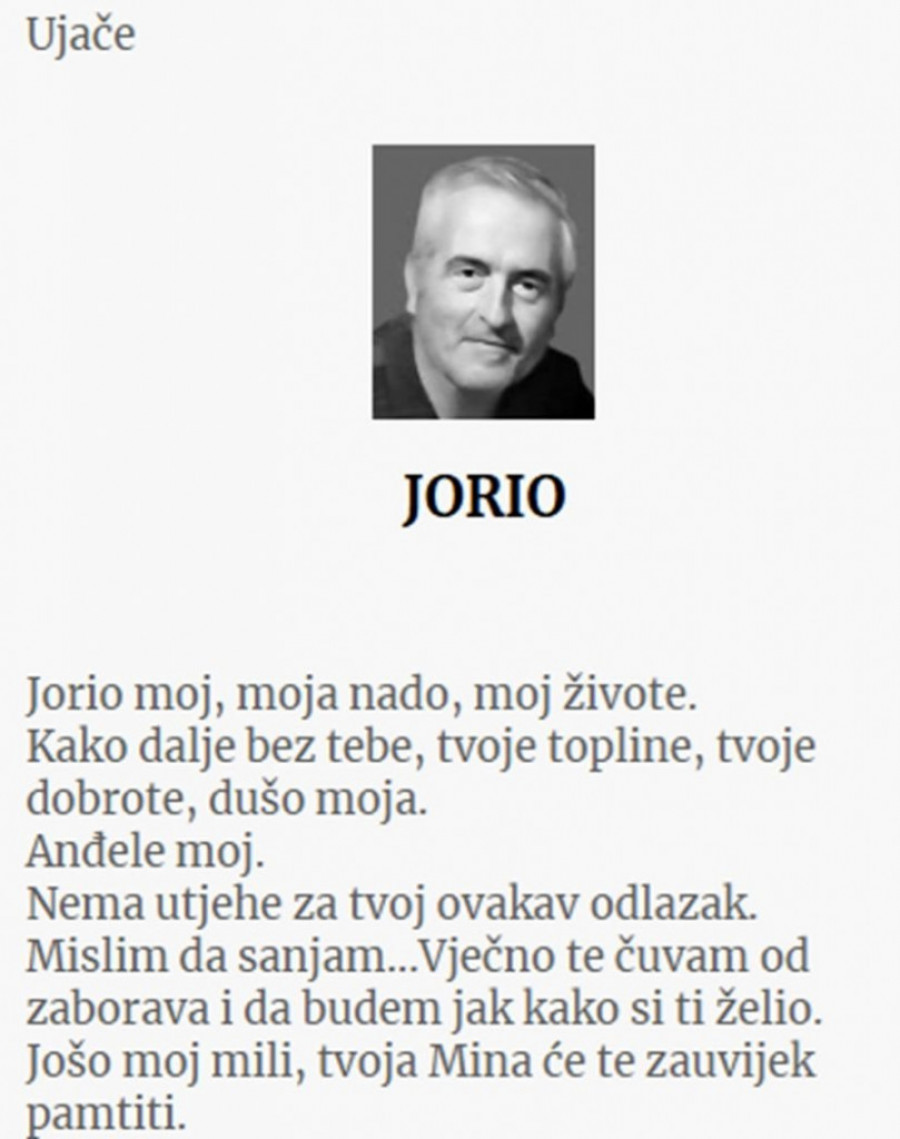 - Uzeli su vas, a sa vama je otišlo i pola mene. Ova bol nastala vašim odlaskom se ne može nikad izlečiti. Jedina uteha je to što znam da ste sada zajedno i da nas posmatrate odozgo. Pazite na nas kada mi nismo znali paziti na vas.