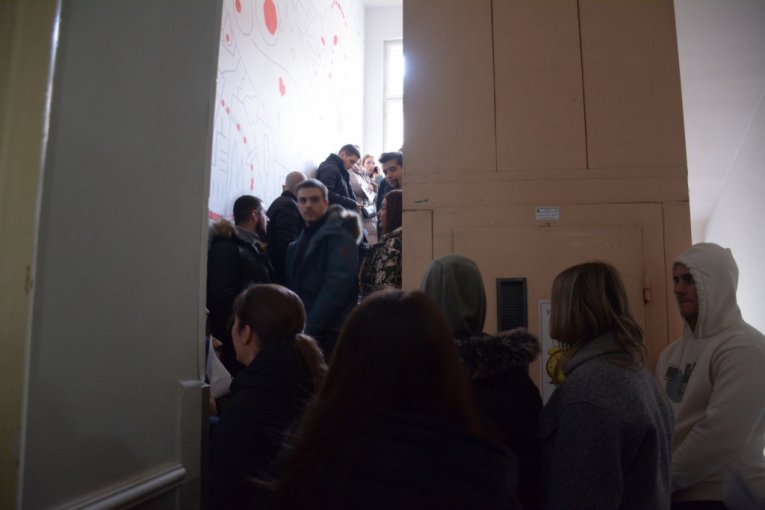 Inače u hodnicima Instituta nije bilo mesta da se prođe. Uglavnom su tu bili mladi ljudi, maturanti, ali je bilo i onih nešto starijih. Mladalačka solidarnost koju su pokazali maturanti je za svaku pohvalu.