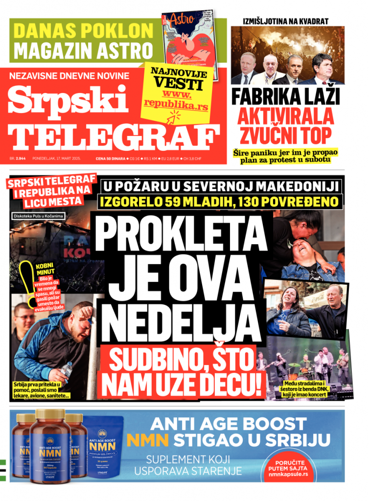 Srpski telegraf u izdanju za ponedeljak 17. mart 2025. donosi pregršt novih i zanimljivih priča!