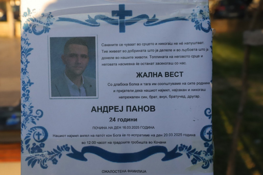ndrejeva porodica je saopštila da će njegovo telo biti izloženo sutra u 10 sati u skopskoj kapeli Butel, preneli su skopski mediji.