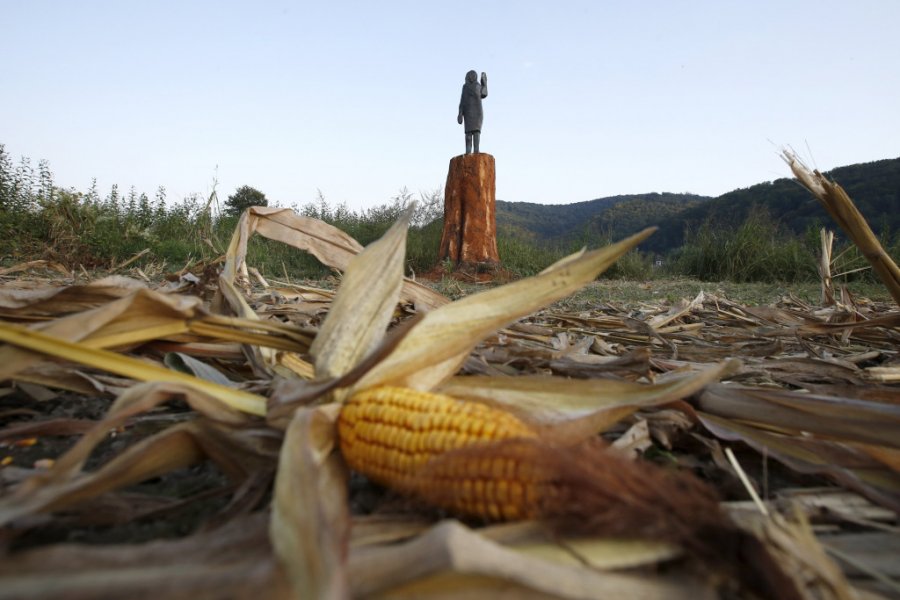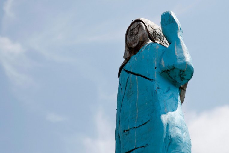 Skulptura je prikazivala Melaniju u plavoj haljini, nalik onoj koju je nosila na inauguraciji svog supruga 2017. godine.
