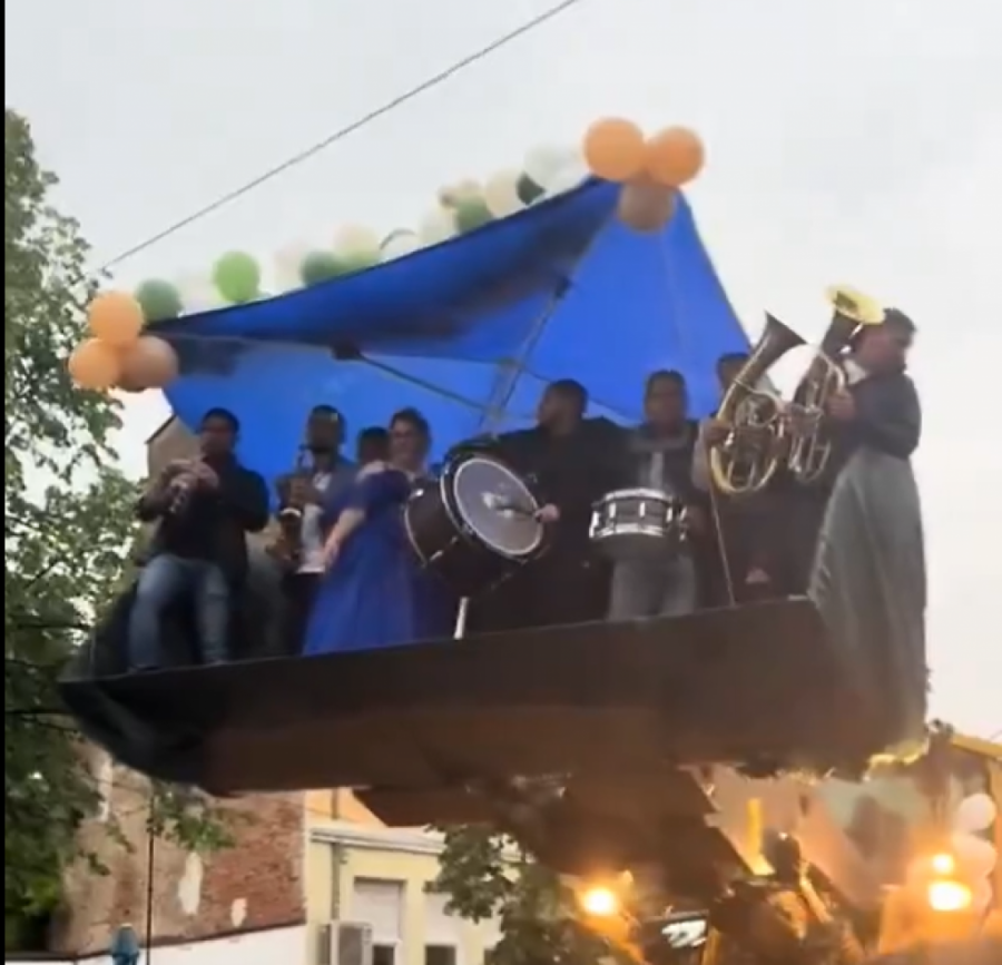 SPEKTAKL ZA KRAJ ŠKOLE! Maturantkinja u haljini izlazi iz bagera, trubači je prate – snimak "gori" na mrežama! (VIDEO)