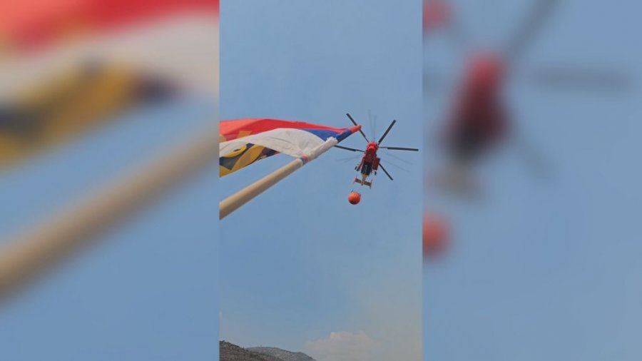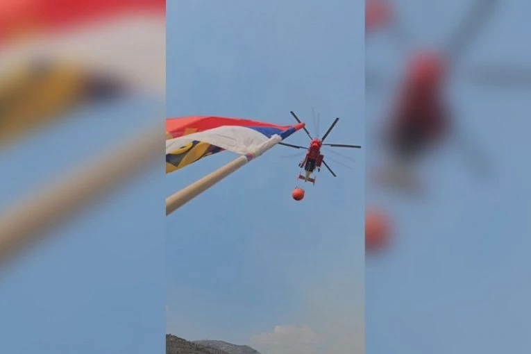 Naša posada vodi herojsku borbu vodi sa vatrom, a region je danas obišao snimak na kom se vidi da jedan muškarac sa srpskom zastavom dočekuje naš helikopter dok iz Morače vadi vodu za gašenje požara.