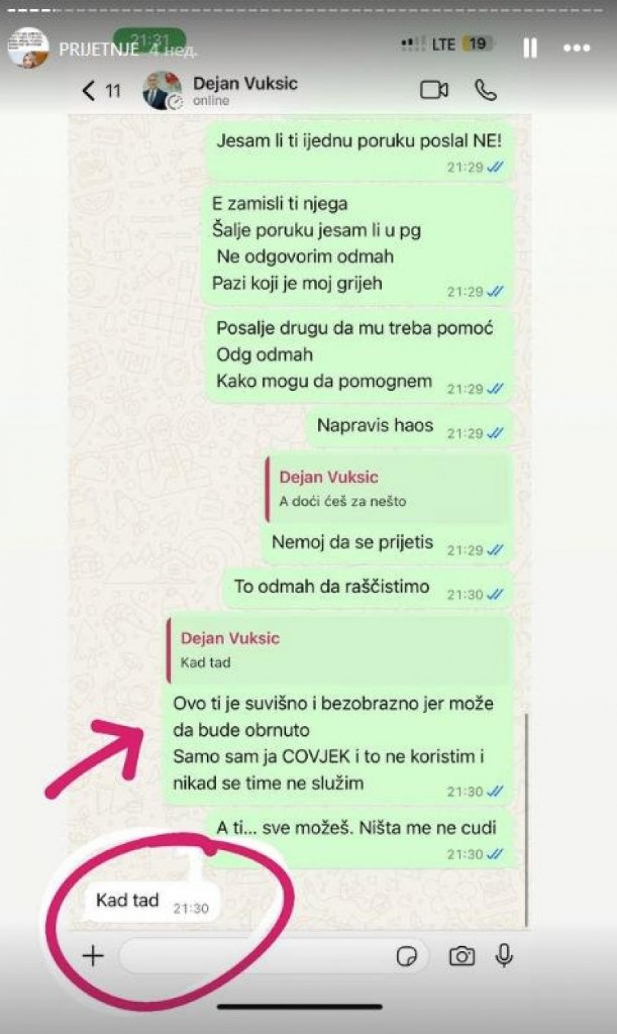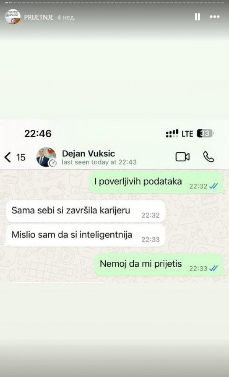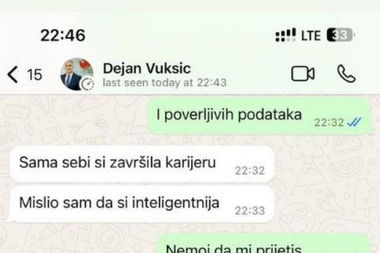 "SAMA SI SEBI ZAVRŠILA KARIJERU!" Crnogorska bivša državna sekretarka objavila PREPISKU sa Vukšićem - SKANDAL NE PRESTAJE DA TRESE SUSEDE! (FOTO)