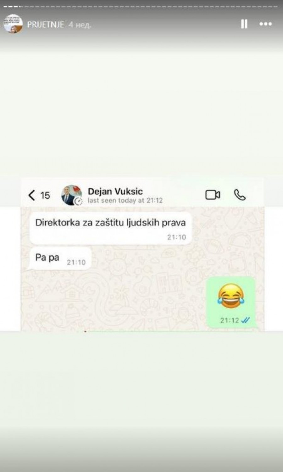 Mirjana Pajković, bivša državna sekretarka u Ministarstvu ljudskih i manjinskih prava Crne Gore, oglasila se na Instagramu objavivši delove navodne prepiske i audio-snimke razgovora sa Dejanom Vukšićem, nekadašnjim direktorom Agencije za nacionalnu bezbednost (ANB), koji je takođe podneo ostavku nakon izbijanja skandala sa eksplicitnim sadržajem.