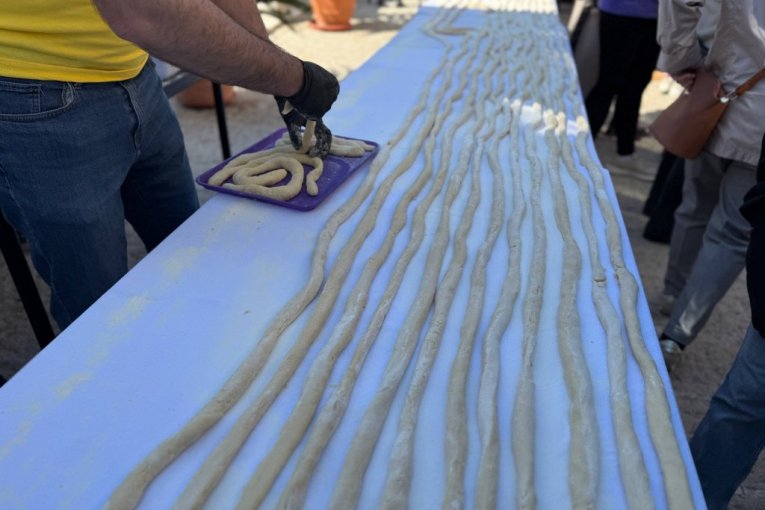 Njihov trud nagrađen je aplauzima okupljenih građana, ali i velikim interesovanjem posetilaca koji su želeli da vide kako nastaje najduža njoka u ovom delu primorja.