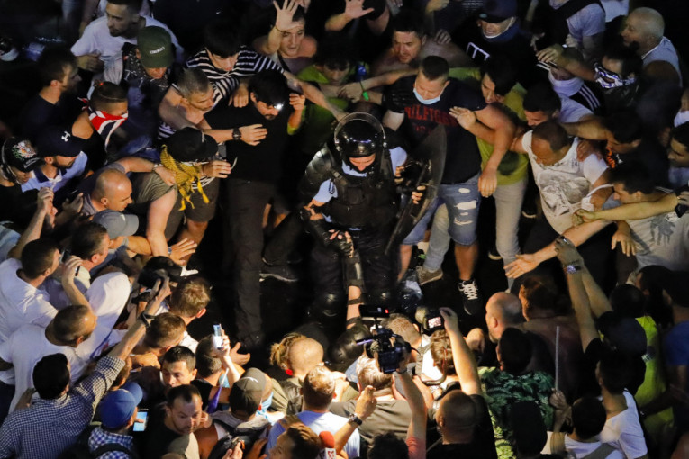 Sukobi su izbili sinoć kada su neki od desetine hiljada učesnika protesta pokušali da probiju policijski kordon oko vladinih objekata, prenosi AP.