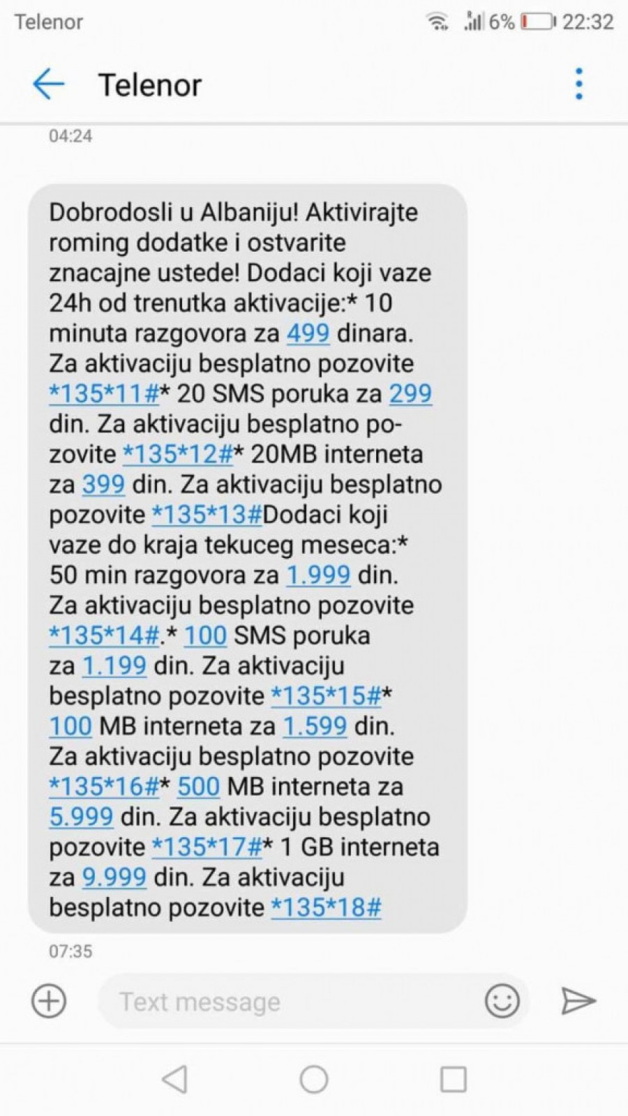 SUTOMORE SMESTILI U ALBANIJU: Čudan propust mobilnog operatera