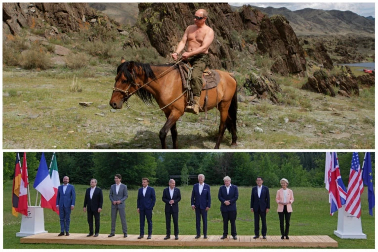 LIDERI G7 SE SPRDALI S PUTINOM! Da li će ih ovo skupo koštati: Ursula spomenula jahanje, Džonson i Trudo hteli da se skinu goli do pojasa!? (VIDEO) Autor: Republika Svet 26.06.2022 15:55 Pratite nas i putem Android ili iOS aplikacija Lideri G7 sastali su se u Nemačkoj, gde su doneli odluku o novom udaru na Rusiju, a ovoga puta o zabrani uvoza ruskog zlata. Ono što upada u oči javnosti je podsmevanje ruskom predsedniku Vladimiru Putinu! Foto: Tanjug/AP Lideri najmoćnijih zemalja sastali su se u Nemačkoj kako bi, između ostalog dogovorili i novi udar na Rusiju. Doneta je odluka da se zabrani uvoz ruskog zlata, ali ono što je izazvalo više pažnje je ponašanje lidera G7. Naime, kada su se našli za istim stolom, ujedinili su se u sprdnji na račun predsednika Rusije. Prednjačio je britanski premijer Boris Džonson, upitavši da li da skinu sakoe, odnosno da li da se poskidaju. Na to je odgovorio premijer Kanade Džastin Trudo, pokušavši da bude duhovit. - Hajde da sačekamo prvo da se završi fotografisanje - poručio je Trudo, nakon čega su uz osmeh pozirali lideri Francuske, Nemačke, Kanade, Italije, Japana, Velike Britanije, Amerike i Evropske unije. Tanjug/AP Tanjug/AP Tanjug/AP Tanjug/AP Tanjug/AP Tanjug/AP Tanjug/AP Tanjug/AP Tanjug/AP Tanjug/AP Džonson je potom dobacio: "Moramo da pokažemo da smo jači od Rusije", na šta je Trudo uzvratio "Skinućemo se goli do pojasa i jahaćemo konja", aludirajući na fotografiju Vladimira Putina iz 2009. godine, kada je nag do pojasa jahao konja tokom odmora u Sibiru. "Pokazaćemo i mi naša prsa", poručio je Džonson, a onda se ubacila i predstavnica Evropske komisije Ursula fon der Lajen: - Jahanje je najbolja stvar - rekla je Fon der Lajen. Poštovani čitaoci, možete nas pratiti i na platformama: Facebook, Instagram, YouTube, TikTok, Telegram, Vajber. Pridružite nam se i prvi saznajte najnovije i najvažnije informacije. Naše aplikacije možete skinuti sa Google Play i Apple AppStore. Pročitajte i... Sukobi 11:56 26.06.2022 PUTIN POD ROTACIJAMA STIGAO U KREMLJ! Panika u Moskvi, jurnjava usred noći: ON je odmah reagovao! (VIDEO) Sukobi 15:31 25.06.2022 TRESE SE RUSIJA ZBOG PUTINOVE NOVE ODLUKE! Šok kakav Moskva nije očekivala, pljušte smene: Na čelu operacije invazije na Ukrajinu najsuroviji ruski operativac! Sukobi 16:51 23.06.2022 BIĆE VRUĆE LETO ZA RUSE, NEKIMA ĆE BITI I POSLEDNJE! Ameri poslali Kijevu moćno oružje, oglasio se i Putin! (VIDEO) Sukobi 13:31 31.05.2022 RAT U UKRAJINI JE GOTOV! Putinova ljubimica šokirala u uživo programu: Počinje nešto MNOGO GORE! (VIDEO) Tagovi Vladimir Putin jahanje Sastanak G7 G7 sastanak Boris Džonson Boris Džonson Rusija Ursula fon der Lajen Vladimir Putin Rusija Ukrajina pregovori Rat u Ukrajini bliv aklamator Komentari (7) Zoran 26.06.2022 16:00 jahace te vi posle sarmata nebesima Odgovori 2 4 Bibi 26.06.2022 16:47 Prostakluk glupih pijanih kauboja i klosara ostaje za uvek. Oni se smeju sami sebi. Odgovori 2 5 Marko 26.06.2022 17:31 Šta ćeš, nemoćni ste, a biće vam još gore samo polako Odgovori 2 2 Tomislav 26.06.2022 17:38 Da bi se neko skinuo do pojasa, prvo mora da bude zgodan i da zna bar nešto. Drugo treba da nauče da jašu kao što dotična gospođa zna jer ona se sa konja i ne skida a dotična gospoda moraće sami sebe da jašu jer Putina i Rusiju neće sigurno. A to kerebečenje ima ih skupo koštati. Odgovori 2 3 svi komentari ostavite komentar Svet Sukobi 23:58 05.12.2025 PONOVO SE RAZBUKTAVA SUKOB! Rafali duž granice između Pakistana i Avganistana, primirje pod znakom pitanja! Svet 23:27 05.12.2025 TATJANA NESTALA, TRAGALI ZA NJOM 11 DANA, A ONDA USLEDIO OBRT: Pronašli je živu u potkrovlju kuće njenog komšije: "NISAM JE PRISILIO DA OSTANE" Svet 22:56 05.12.2025 AMERIKA UVODI NOVO ZATVARANJE GRANICA: Tramp širi zabranu ulaska - preko 30 zemalja na crnoj listi! Svet 22:43 05.12.2025 DEVOJKA PRONAĐENA MRTVA U MOTELU! Bivši dečko optužen da ju je ubio pred njihovim DVOGODIŠNJIM SINOM Svet 22:09 05.12.2025 AFERA "INDUSTRIJA BEBA" POTRESA BALKAN! Zatvoraju i drogiraju žene, a onda ih prisiljavaju da rode! PO DETETU ZARAĐUJU I PO 120.000 EVRA! Svet 22:00 05.12.2025 TRAMPOV LOV NA CRVENE VEŠTICE! FBI pravi spiskove antikapitalista! NAREĐENA REPRIZA PROGONA KOMUNISTA U AMERICI 1963-1954. Svet 21:58 05.12.2025 MEĐU MRTVIMA IMA I STUDENATA! Eksplozija gasne boce ubila 10 ljudi (FOTO, VIDEO) Svet 21:21 05.12.2025 PREMINUO FRENK GERI! Autor Dizni hola i Gugenhajma u Bilbau zauvek promenio arhitekturu Svet 20:38 05.12.2025 AUTO LETEO KROZ VAZDUH! Mercedes PRELETEO dva vozila u kružnom toku! STRAVIČAN SNIMAK NESREĆE! (VIDEO) Svet 20:25 05.12.2025 HAG IZDAO NALOG ZA HAPŠENJE PUTINA! Svet u šoku! Svet 20:15 05.12.2025 NOVI TALAS STRAŠNOG GRIPA! RODITELJI OČAJNI! Virus H3N2 se otima kontroli u Kini! IMA MRTVIH! Svet 19:47 05.12.2025 DOKTOR POLNO ZLOSTAVLJAO PACIJENTE! Na meti perverznjaka bila i DECA! Svet 19:13 05.12.2025 MAKRON TRČI, KINESKI POLICAJCI GA JURE! Haos tokom državne posete predsednika Francuske: Neočekivano se odvojio od obezbeđenja (VIDEO) Svet 19:10 05.12.2025 INTERVENTNA POLICIJA SUZAVCEM RASTERALA BLOKADU POLJOPRIVREDNIKA: Hteli da zatvore put do aerodroma, pa IZBIO VELIKI SUKOB Svet 18:52 05.12.2025 "OVO JE JEDNA OD NAJVEĆIH ČASTI U MOM ŽIVOTU" - Tramp dobio FIFA nagradu za mir Svet 17:28 05.12.2025 NARODNA POSLANICA NA ČELU KRIMINALNE GRUPE! Ani sada preti čak 10 godina robije! Svet 17:13 05.12.2025 PUCNJAVA NAD VOJNOM BAZOM! Dronovi leteli iznad podmornica sa NUKLEARNIM NAORUŽANJEM u Francuskoj (FOTO, VIDEO) Svet 15:39 05.12.2025 SADA JE NAGRABUSIO: Policajac optužen za teško nasilje tokom protesta! Svet 15:18 05.12.2025 OSTAVIO JE ŠEST I PO SATI BEZ IKAKVE OPREME I POMOĆI: Planinar optužen da je ubio devojku nasred planine Svet 14:43 05.12.2025 "AKO NE POSTIGNEMO CILJ MIRNIM PUTEM, SUKOB ĆE SE NASTAVITI": Zlokobne reči iz Kremlja, Putin spreman za NASTAVAK RATA! Svet 14:21 05.12.2025 FARAŽ ODBIO NA