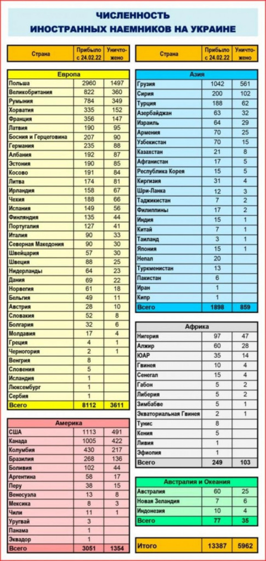 BLIZU 6.000 POGINULIH STRANIH PLAĆENIKA U UKRAJINI: Ministarstvo odbrane Rusije objavilo stravičnu listu, na njoj i jedan Srbin Autor: Republika/I.M. Svet 15.03.2024 13:43 Pratite nas i putem Android ili iOS aplikacija Podatke ruskog Ministartsva odbrane nije moguće nezavisno proveriti. Foto: Tanjug/AP Ministarstvo odbrane Rusije tvrdi da su od početka sukoba u Ukrajini poginula 5.962 strana plaćenika koja su ratovala na ukrajinskoj strani. Moskva takođe navodi da je za dve godine rata na front stiglo ukupno 13.387 stranih plaćenika iz 91 države. - Ministarstvo odbrane nastavlja da prati i beleži sve strane plaćenike koji su stigli u Ukrajinu kako bi učestvovali u neprijateljstvima - navodi se u saopštenju ruskog Ministarstva. Najbrojniji su plaćenici iz Poljske. Moskva tvrdi da je za dve godine u Ukrajinu stiglo 2.960 poljskih plaćenika i da je do 24. febuara 2024. godine 1.497 njih likvidirano. To je skoro četvrtina ukupno poginulih najamnika. Na drugom mestu su plaćenici iz SAD. Ukrajinskim jedinicama navodno se pridružilo 1.113 plaćenika sa američkim pasošem, dok je 491 likvidiran u borbama. Treće mesto drže militanti iz Gruzije. Za dve godine sukoba na frontu širom Ukrajine nastradao je 561 plaćenik iz Gruzije od 1.042 angažovana. Plaćenici iz Kanade i Velike Britanije nalaze se na četvrtom i petom mestu. Foto: Ministarstvo odbrane Rusije Među stranim plaćenicima koji ratuju na strani Ukrajine nalazi se veliki broj najamnika iz balkanskih država. Ministarstvo odbrane Rusije navodi da je u borbama učestvovalo 335 plaćenika iz Hrvatske i da su 152 likvidirana. Iz BiH je došlo 207 najamnika dok je 90 nastradalo. Među stranim plaćenicima nalazi se i Albanci. Moskva navodi da su se borbama pridružila 192 državljanina Albanije i da je 87 nastradalo u okršajima sa ruskim snagama. Među najamnicima ima i državljana takozvanog Kosova koje rusko Ministarstvo iz nekog razloga vodi na spisku kao posebnu državu. Za dve godine u sukobima u Ukrajini učestvovao je 191 plaćenik sa pasošom lažne države dok su 84 likvidirana. Na ukrajinskoj strani ratovala su i dva plaćenika iz Crne Gore od kojih je jedan poginuo. Na spisku se nalazi i jedan Srbin koji prema podacima ruskog Ministarstva odbrane ratuje na strani Ukrajine. Takođe je primetno da se među stranim plaćenicima nalazi i veliki broj najamnika iz Južne Amerike i da među njima prednjače Kolumbijci. Podatke ruskog Ministartsva odbrane nije moguće nezavisno proveriti dok se države retko kad oglašavaju o svojim državljanima koji učestvuju u sukobu na jednoj od strana. Poštovani čitaoci, možete nas pratiti i na platformama: Facebook, Instagram, YouTube, TikTok, Telegram, Vajber. Pridružite nam se i prvi saznajte najnovije i najvažnije informacije. Naše aplikacije možete skinuti sa Google Play i Apple AppStore. Pročitajte i... Sukobi 13:04 14.03.2024 KIJEV SMISLIO REŠENJE: Poznato kako će Ukrajina nadomestiti nedostatak ljudstva na frontu (VIDEO) Sukobi 10:42 14.03.2024 VELIKO PONIŽENJE ZA RUSIJU: U samo jednoj akciji Ukrajinci eliminisali 25 neprijatelja, ali i vojni ponos kojim se diči Moskva (VIDEO) Sukobi 14:34 12.03.2024 UKRAJINA UČI OD NEPRIJATELJA: Kijev gradi "zid smrti" po uzoru na "Surovikinovu liniju" (FOTO) Sukobi 16:51 08.03.2024 MOSKVA PRITEŠNJENA DOKAZIMA: Indija obavestila Rusiju o mreži krijumčarenja ljudi za rat u Ukrajini (VIDEO) Tagovi Rusija Ukrajina Rat u Ukrajini Ministarstvo odbrane Rusije Strani plaćenici Komentari (0) Svet Svet 10:15 "PUTIN I VITKOF SU PRIJATELJI, ODLIČNO SE RAZUMEJU": Oglasio se pomoćnik predsednika Rusije i OTKRIO je nešto što niko nije znao Svet 09:47 HITNA EVAKUACIJA! Poplave došle pred vrata mesta, stanovnici u trenu POBEGLI OVDE! Svet 09:28 SUDAR AUTOBUSA I KAMIONA, SEDMORO MRTVIH! Užas nad užasima na putu, hitna pomoć ne zna kome pre od povređenih da pomogne Svet 09:13 MERC SE SPASAO: Usvojena reforma penzionog sistema, evo šta se sada menja Svet 09:04 TERETANA ZARAZILA ČAK 14 OSOBA! Svi su dobili istu bolest, sada se samo MOLE da će PREŽIVETI Svet 08:50 MASOVNI NAPAD RUSA: Ukrajina gori, sirene odjekuju zemljom Svet 08:42 LEPA VALENTINA KAŽNJENA: Zapaila Kuran, pa se smejala u kameru, a sada je doživela NAJGORE PONIŽENJE Svet 08:29 PAKAO NA ZEMLJI: Rupa na putu se otvorila i PROGUTALA dva automobila! (VIDEO) Svet 08:16 RADIJACIJA NA IZVOL'TE! Oštećen štit iznad nuklearnog reaktora Svet 07:45 POLJSKA HITNO DIGLA BORBENE AVIONE, IMA RANJENIH! Izvedeni snažni udari Svet 07:20 EVROPA ĆE SE SNAĆI AKO RUSIJA KRENE: Vrhovni komandant NATO paralisao svet! Svet 06:50 VAŠINGTON PRITISKA: Tramp zadao rok, a EU u panici! Svet 06:39 EVROPA ZALEĐENA! Oružani sukob vojske i obaveštajaca - Ukrajinci pucaju sami od sebe! Svet 03:30 TRAMP SE NAJPRE PROTIVIO, ALI JE KASNIJE PROMENIO STAV! Sud u Floridi odobrio objavljivanje dokumenata iz federalne istrage o predatoru Epsajnu! Svet 02:30 SUPRUGA SKUVALA MUŽU PASULJ SA SLANINOM, ON ZAVRŠIO U KOMI: Toksikološki nalaz otkrio JEZIVU ISTINU! U ceo plan bila umešana JOŠ JEDNA ŽENA! Svet 01:30 PUTIN I TRAMP KAO JUNACI CRTANOG FILMA! Indijci objavili animaciju sa svojim premijerom i SVETSKIM LIDERIMA (VIDEO) Svet 00:39 SVE ZAVISI OD RUSIJE: Vitkof i Kušner imali razgovor sa ukrajinskim zvaničnicima posle razgovora sa Putinom u Moskvi Sukobi 23:58 05.12.2025 PONOVO SE RAZBUKTAVA SUKOB! Rafali duž granice između Pakistana i Avganistana, primirje pod znakom pitanja! Svet 23:27 05.12.2025 TATJANA NESTALA, TRAGALI ZA NJOM 11 DANA, A ONDA USLEDIO OBRT: Pronašli je živu u potkrovlju kuće njenog komšije: "NISAM JE PRISILIO DA OSTANE" Svet 22:56 05.12.2025 AMERIKA UVODI NOVO ZATVARANJE GRANICA: Tramp širi zabranu ulaska - preko 30 zemalja na crnoj listi! Svet 22:43 05.12.2025 DEVOJKA PRONAĐENA MRTVA U MOTELU! Bivši dečko optužen da ju je ubio pred njihovim DVOGODIŠNJIM SINOM Svet 22:09 05.12.2025 AFERA "INDUSTRIJA BEBA" POTRESA BALKAN! Zatvoraju i drogiraju žene, a on