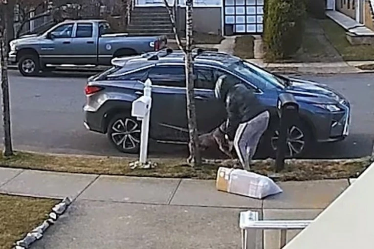 Foto: youtube.com/ Staten Island AdvanceNaime, na snimku koji je nastao 16. marta vidi se kako mali pas pomeranac istrčava iz kuće sa vlasnicom koja je pošla da baci smeće.