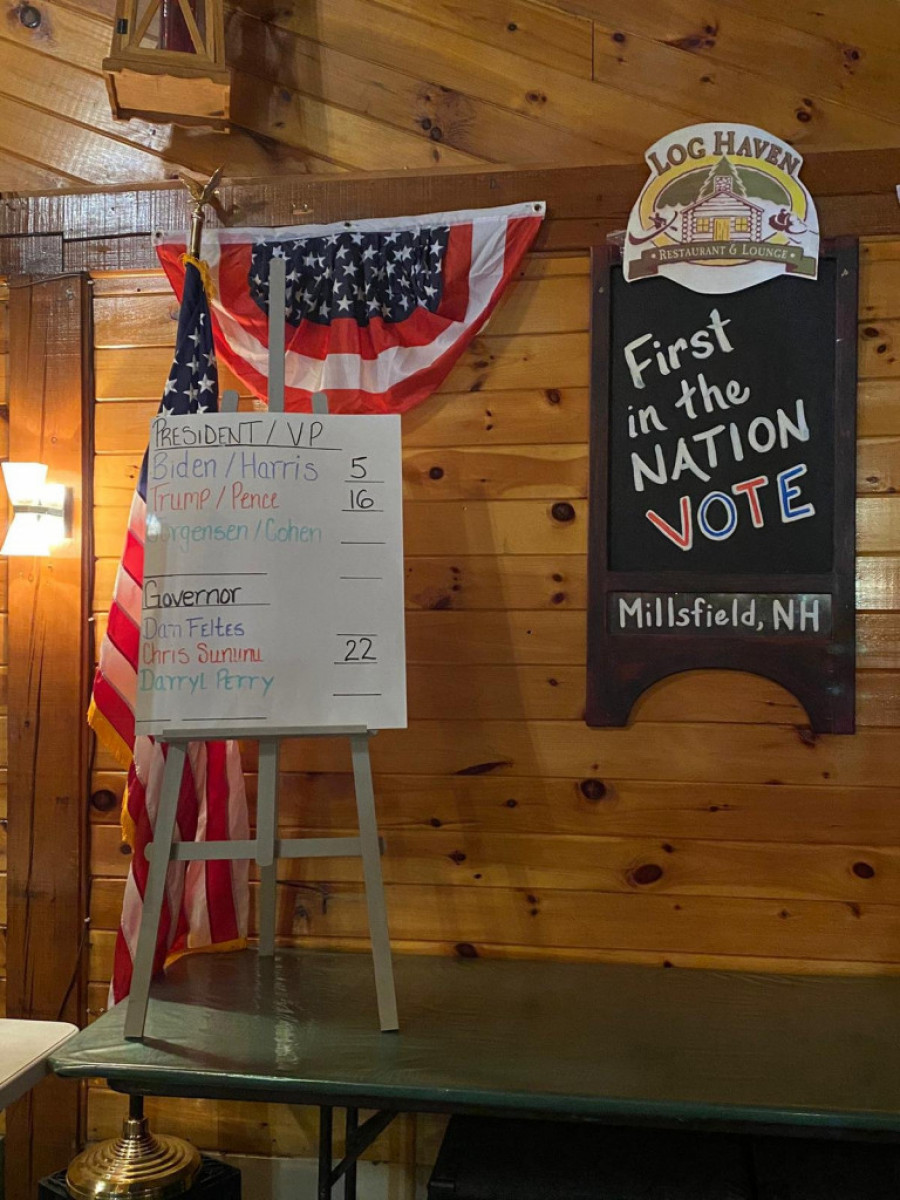 Obližnji Millsfield takođe je otvorio svoja birališta u ponoć. Prema prebrojanim glasovima, Tramp je pobedio sa 16-5 nad Bajdenom.