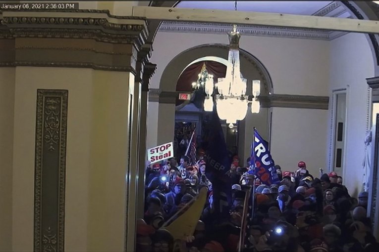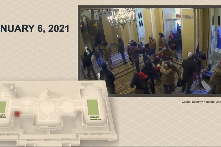 Na novoobjavljenim video-zapisima vidi se kako se demonstranti najpre sukobe sa policijom ispred Kapitola, a zatim nasrću na tu instituciju lomeći prozore. Nakon upada zabeleženo je kako trče i guraju se po hodnicima rušeći inventar, istovremeno noseći transparente s Trampovim sloganima i fotografijama. Najveći šok okupljenih Senatora izazvao je zapis na kom se vidi kako besna rulja juriša ka prostoriji gde se nalazio tadašnji potpredsednik SAD Majk Pens. Hodnicima se orilo "obesite Majka Pensa i njegovu porodicu", a u jednom trenutku vidi se kako pripadnici specijalne službe u poslednjem momentu spasavaju potpredsednika.