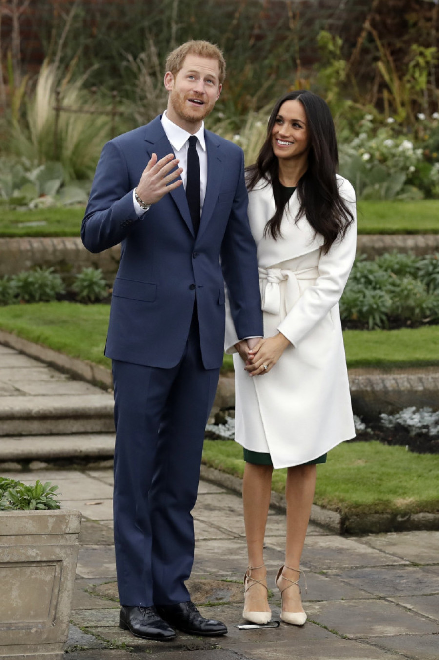 Foto: Tanjug/APPar je kasnije pozirio fotoreporterima u bašti Kesington palate, za koju Hari kaže da je bila omiljeno mesto njegove majke. Princ Hari i Megan su bili veoma raspoložena i strpljivo su pozirali i odgovarali na pitanja novinara.