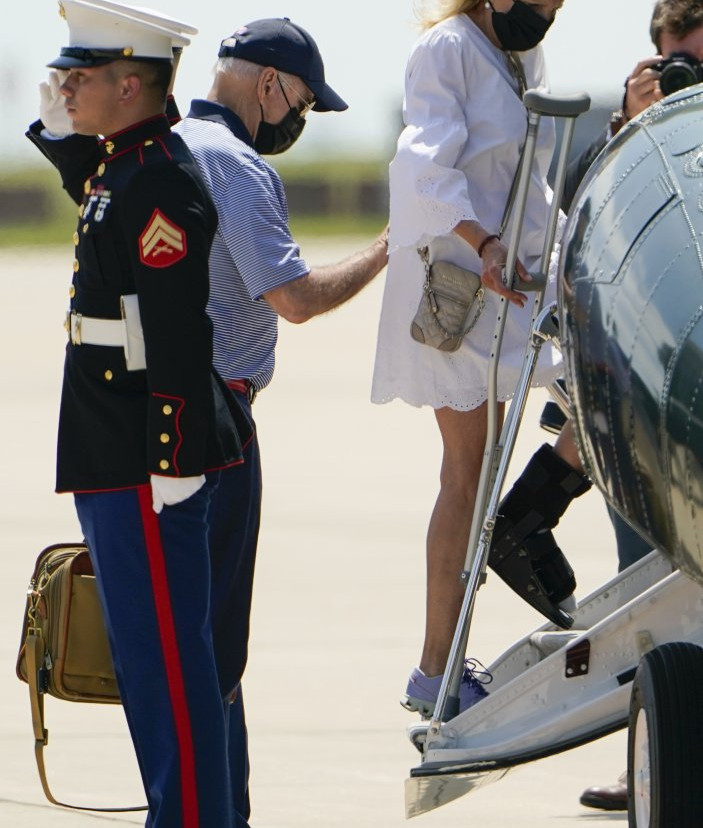 BAJDENOVA ŽENA ZAVRŠILA NA ŠTAKAMA! Jedva se popela u avion, nikome nije jasno kako joj je noga OTKAZALA! (FOTO)