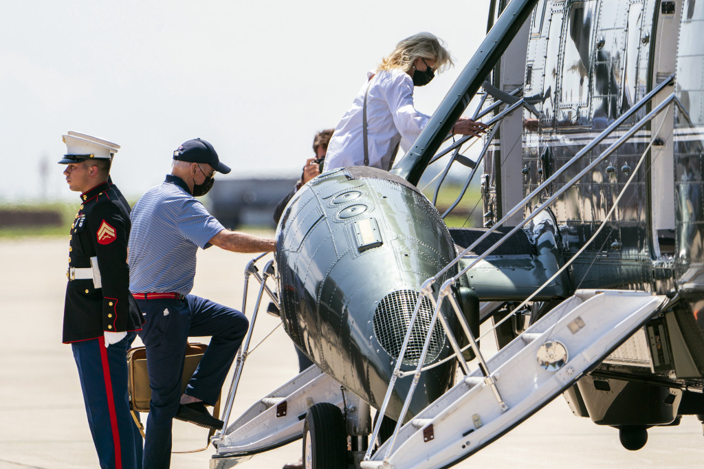 Prilikom ulaska u avion pomogli su joj pripadnici tajne službe, pri čemu je na licu nosila masku i nije želela da se obrati medijima. Pomoć pri ulasku u letelicu joj je pružio i suprug, Džo Bajden, koji je za njom ušao u avion, a koji je, takođe, bio maskiran do neprepoznatljivosti. Nosio je i masku, kačket i naočare za sunce i nikome od prisutnih se nije obratio.