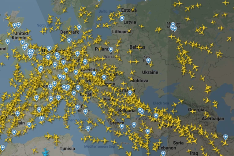 Kao što se može videti na sajtu za praćenje letova "Flajtradar 24", avioni u velikoj meri danas izbegavaju da lete iznad Ukrajine.