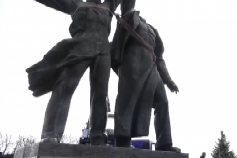 Bronzana statua od osam metara, podignuta 1982. godine u znak sećanja na 60. godišnjicu SSSR, srušena je u prestonici Ukrajine. Statua prikazuje ukrajinskog i ruskog radnika na postolju, koji zajedno drže sovjetski orden prijateljstva, prenosi Rojters.