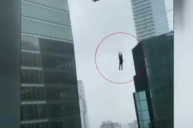 Na društvenim mrežama isplivao je zastrašujući video snimak čiji je sadržaj, na kome se vidi da je jedan građevinarski radnik doživeo strašnu nesreću. Čovek je počeo da vrišti dok je visio ispod palete građevinskog materijala dok se spuštala između nebodera u Torontu.