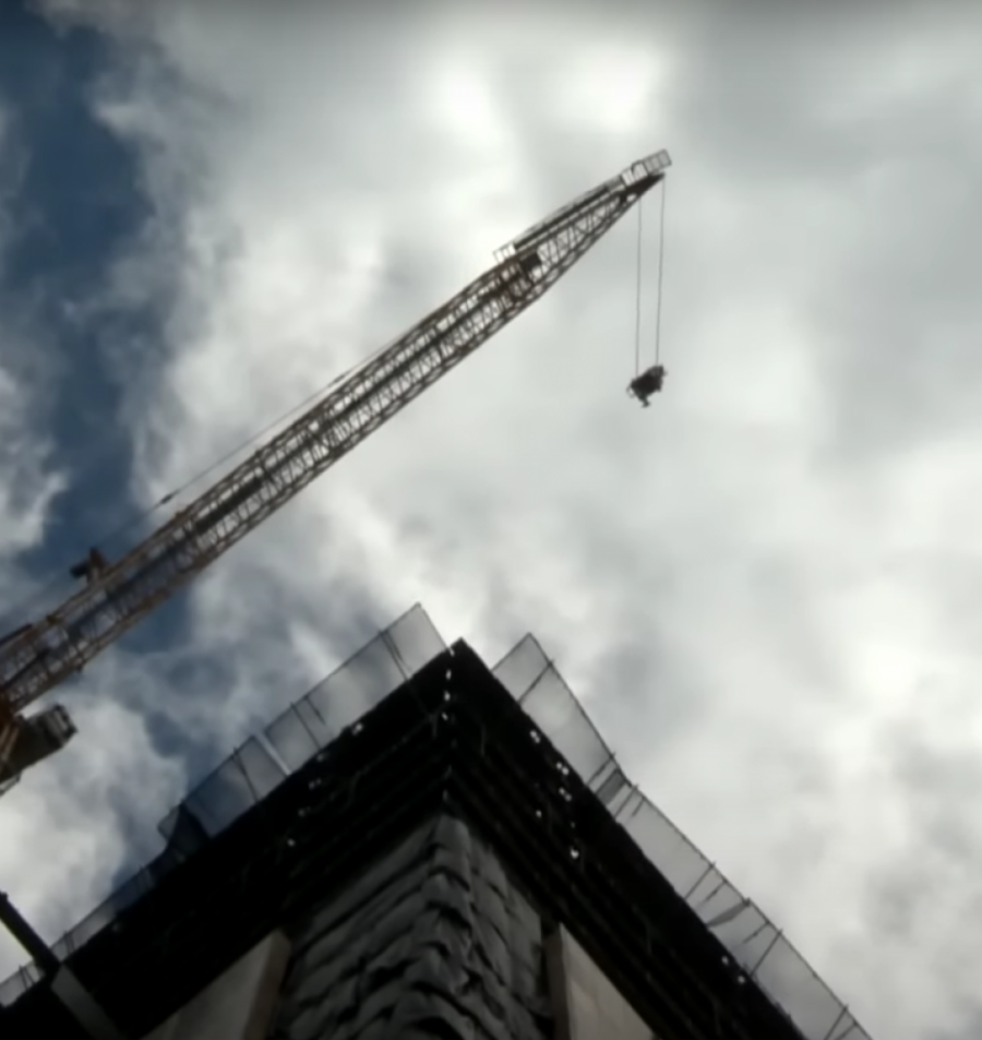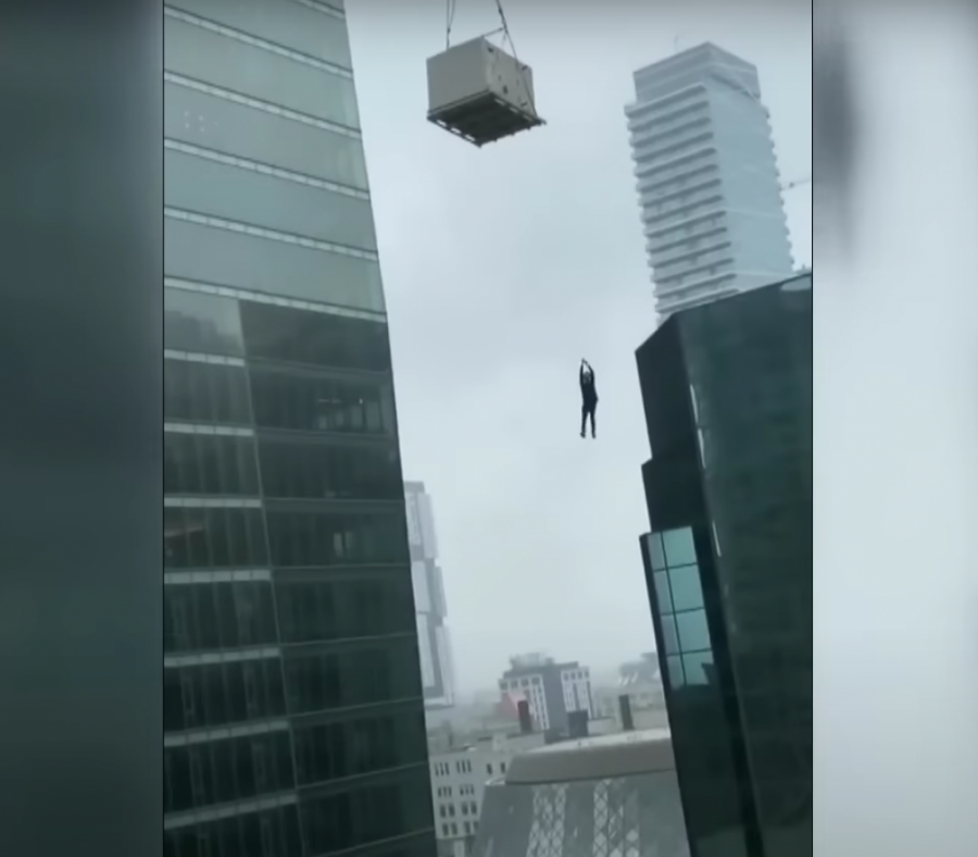 Zastrašujući video prikazuje radnika na gradilištu kako visi sa dizalice stotinama stopa u vazduhu.