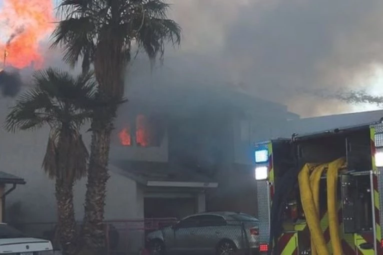 Oko 15 sati dvospratni dupleks zahvatio je požar u blizini državne granice između Arizone i Nevade.