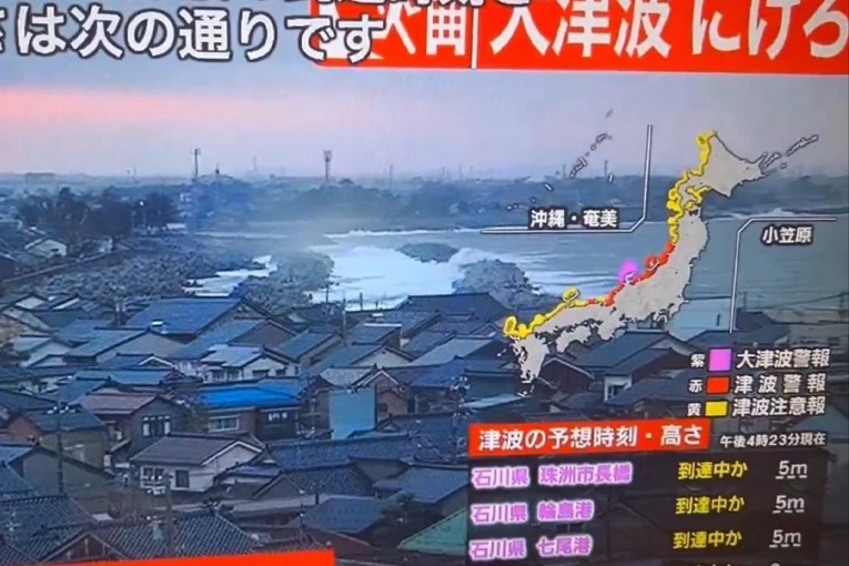 Izdato je upozorenje za cunami duž cele zapadne obale Japana, od severnog ostrva Hokaido do južnog Кjušua, dok se posebna opasnost od cunamija ističe u oblasti prefekture Išikava.