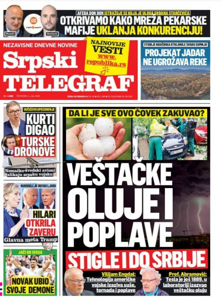 Naslovna strana Srpskog telegrafa za 04. jul 2024.