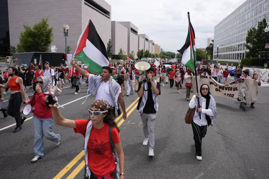 Hiljade demonstranata koji se protive izraelskom ratu u Gazi, od kojih neki nose palestinske zastave, okupilo se danas u blizini američkog Kapitola uoči govora izraelskog premijera Benjamina Netanjahua pred Kongresom.