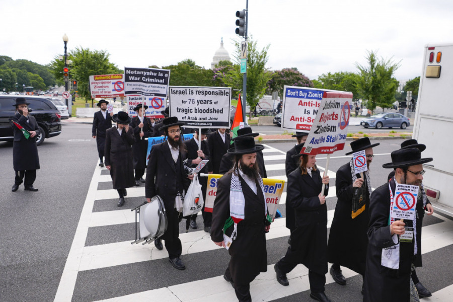 Članovi ultra-ortodoksne jevrejske grupe nosili su palestinske zastave i natpise "Slobodna Palestina" i "Anticionizam nije antisemitizam", dok je grupa mlađih demonstranata plesala uz arapsku muziku i nosila velike transparente sa natpisima "Stop naoružavanju Izraela" i "Stop ratnim zločinima u Gazi".