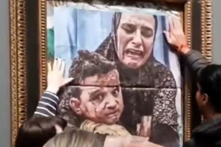 Aktivisti grupe Youth Demand zalepili su fotografiju fotoreportera agencije Anadolu, Alija Jadalaha, koja prikazuje majku i njeno dete u Gazi, na čuvenu sliku Pabla Pikasa, "Majčinstvo", u Nacionalnoj galeriji u Londonu, izveštava Anadolu.
