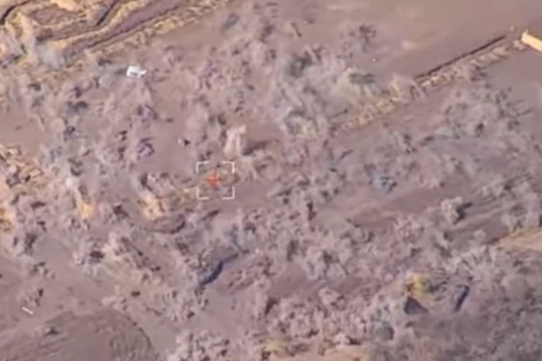 Na snimku se vidi kako ukrajinski dron snima ruske vojnike dok šalje koordinate ukrajinskoj vojnoj jedinici koja upravlja sistemom HIMARS.