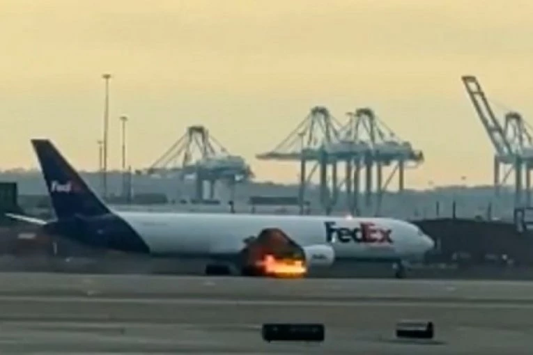 Avion kompanije FedEx sleteo je prinudno na aerodrom, pošto se, sudeći po snimcima, zapalio jedan od njegovih motora.