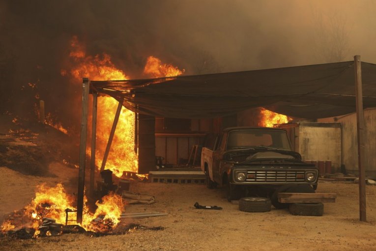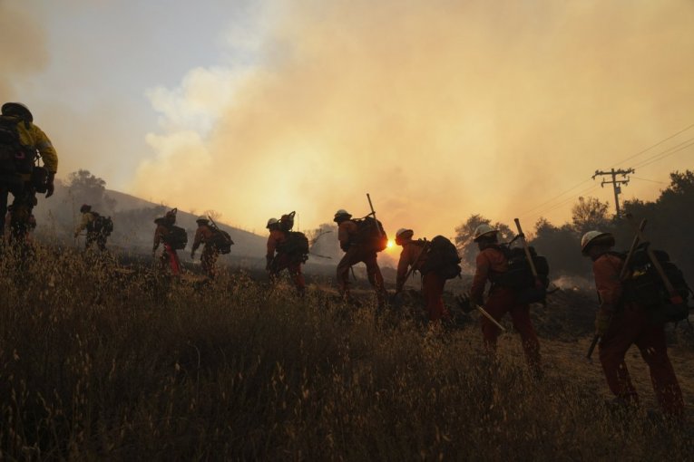 Šumski požar pod nazivom Kanjonski požar izbio se u okrugu Ventura u Kaliforniji, šireći se strahovitom brzinom zbog vrućine koja prelazi 38 stepeni Celzijusa i jakih vetrova.