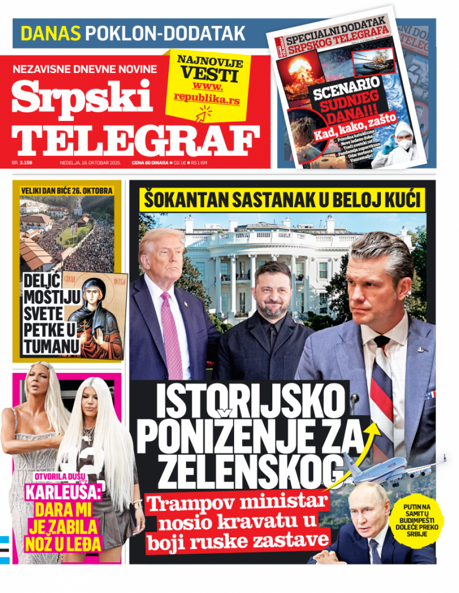 U izdanju Srpskog telegrafa za 19. oktobar pročitajte mnoštvo zanimljivih tekstova.